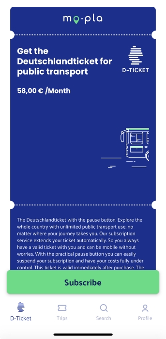 mo.pla 앱으로 58유로 티켓 구입하기